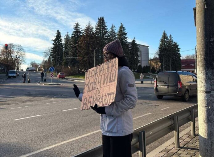 Останню акцію-нагадування у 2025 про військовополонених та безвісти зниклих провели волонтери в Острозі 13 грудня.