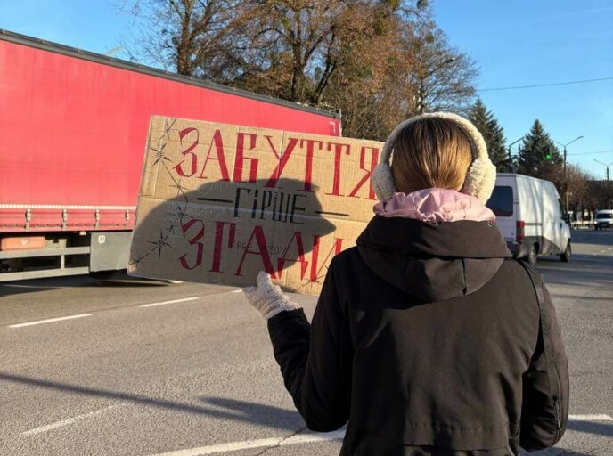 Останню акцію-нагадування у 2025 про військовополонених та безвісти зниклих провели волонтери в Острозі 13 грудня.