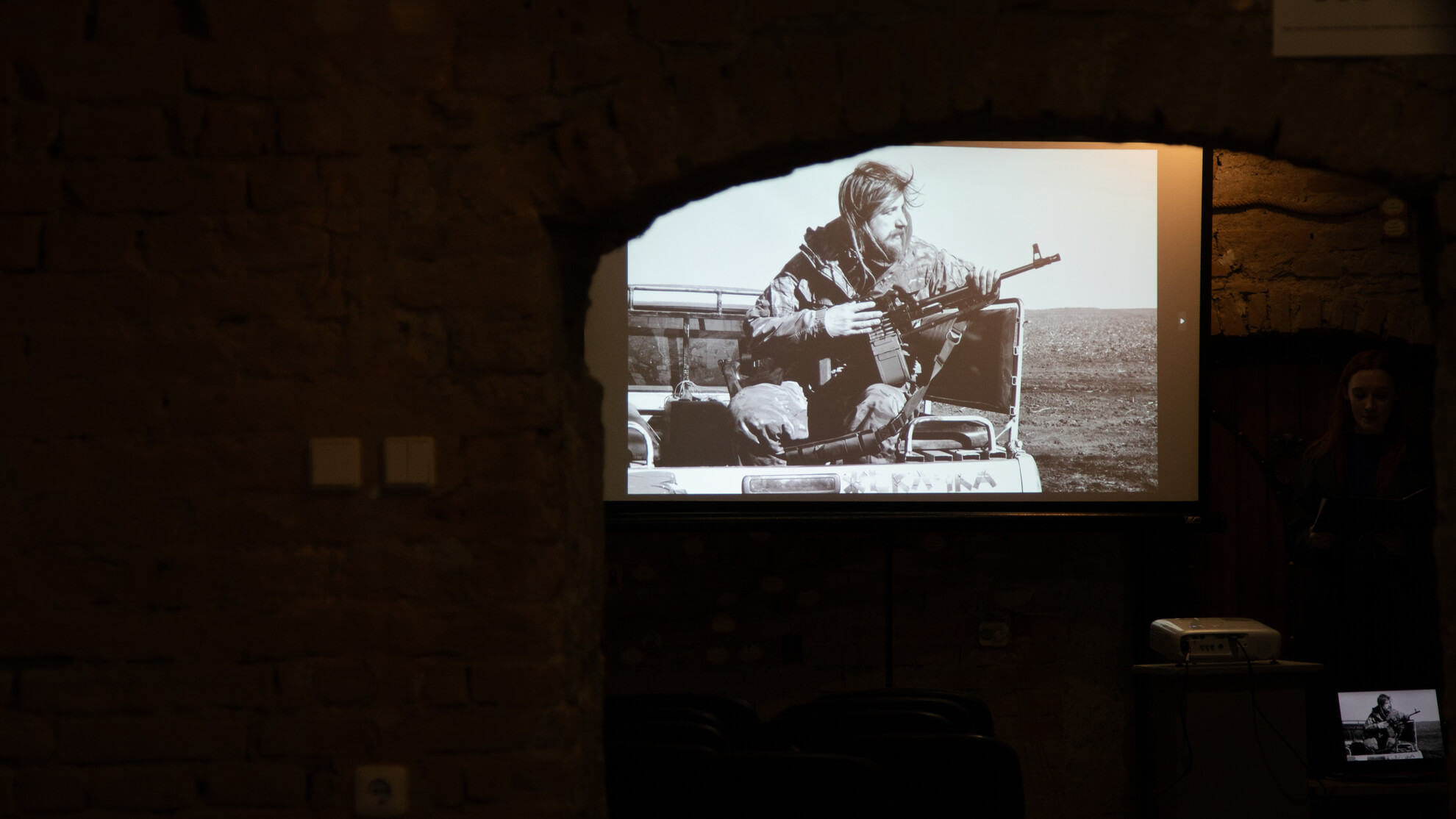 “Сьогодні ми б хотіли познайомити вас із воїном, із поетом, із фотографом”, — каже речниця.