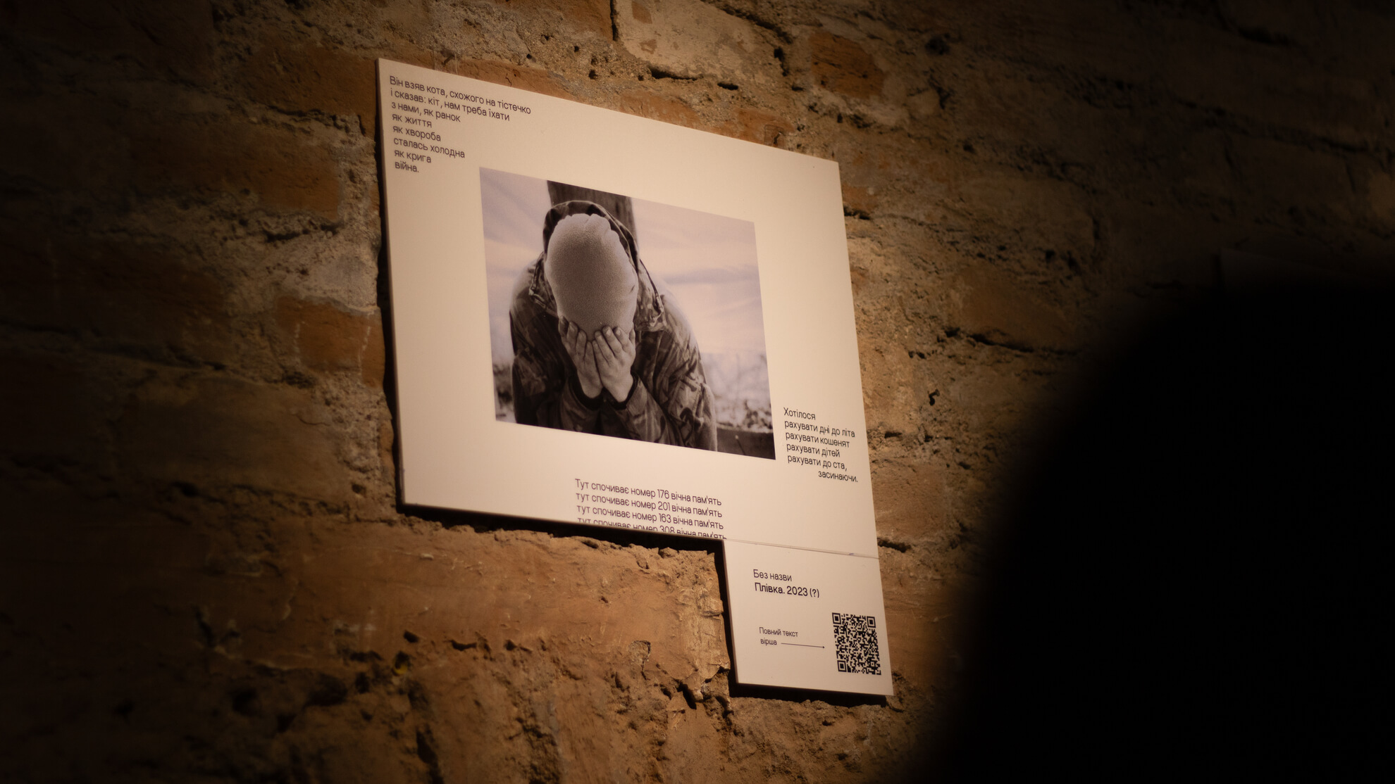 На сірих стінах можна помітити QR-коди, які сканують телефонами найперші гості цієї виставки.