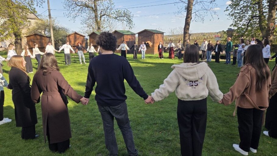 Першою грою стала “Подоляночка”. Учасники водили хоровод навколо тієї, що присіла посередині, і разом “будили” її піснею.