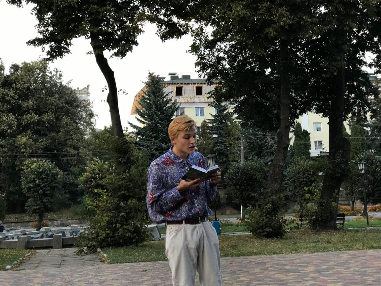 Студенти Острозької академії організували поетичні читання “Краплинні” в центрі міста 26 вересня. Учасники читали свої вірші або вірші улюблених поетів.