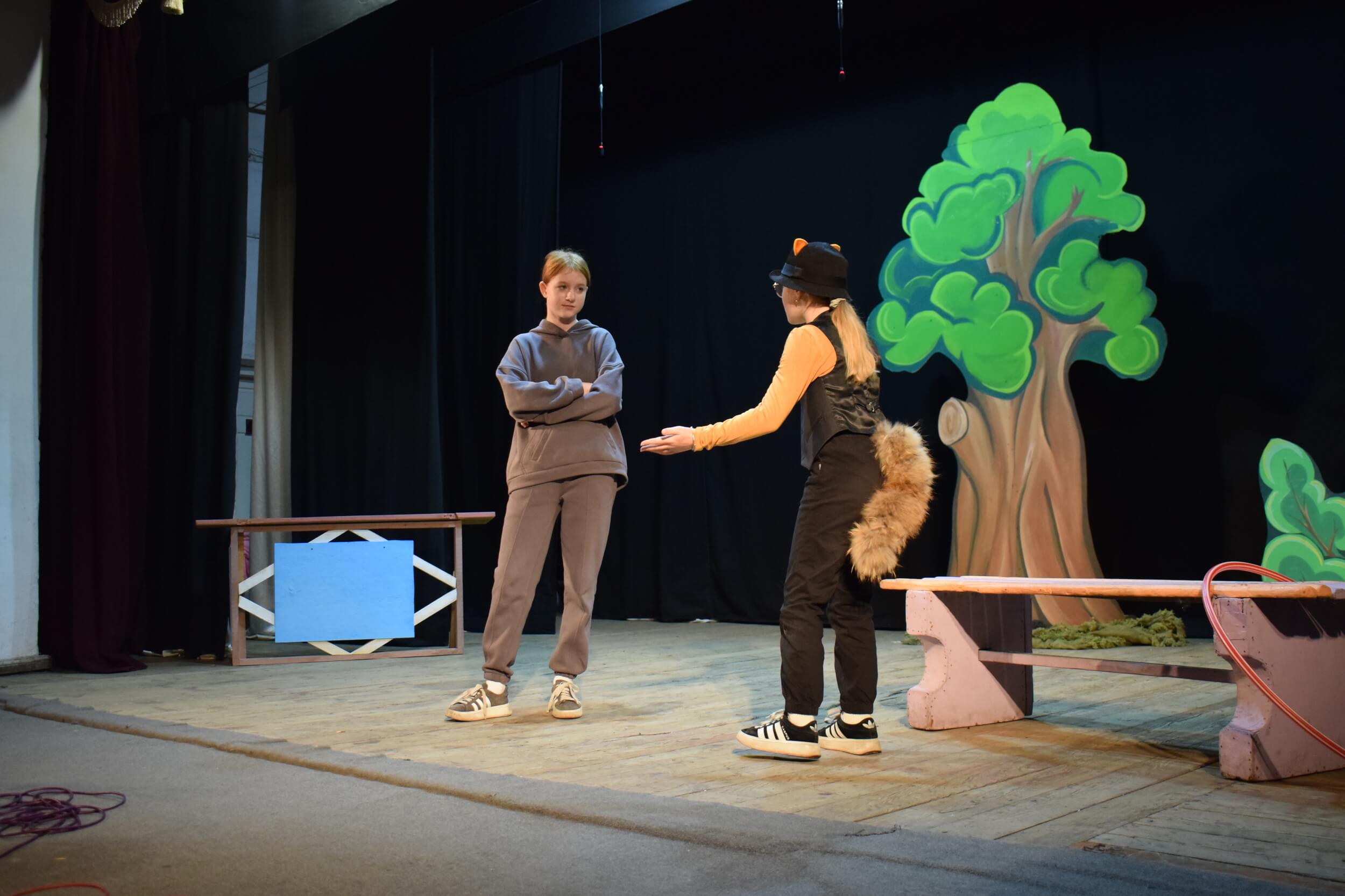 “Сьогодні на сцені детективна п’єса драматургині Анни Галас, в якому Кіт Пуеро та дівчинка Ася розслідують заплутану справу і шукають підозрюваного”, — коментує керівниця гуртка.