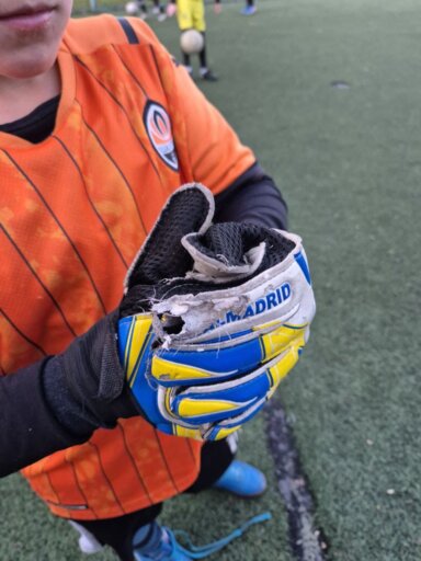 Поки польові гравці зігріваються бігом, він змушений чекати. Влад Дмитрук у воротарських рукавицях і теплому одязі не стоїть на місці ні секунди. Він підстрибує, плескає в долоні, робить випади, щоб зігрітися. Його головний ворог зараз не нападник, а холод, який підкрадається непомітно.
