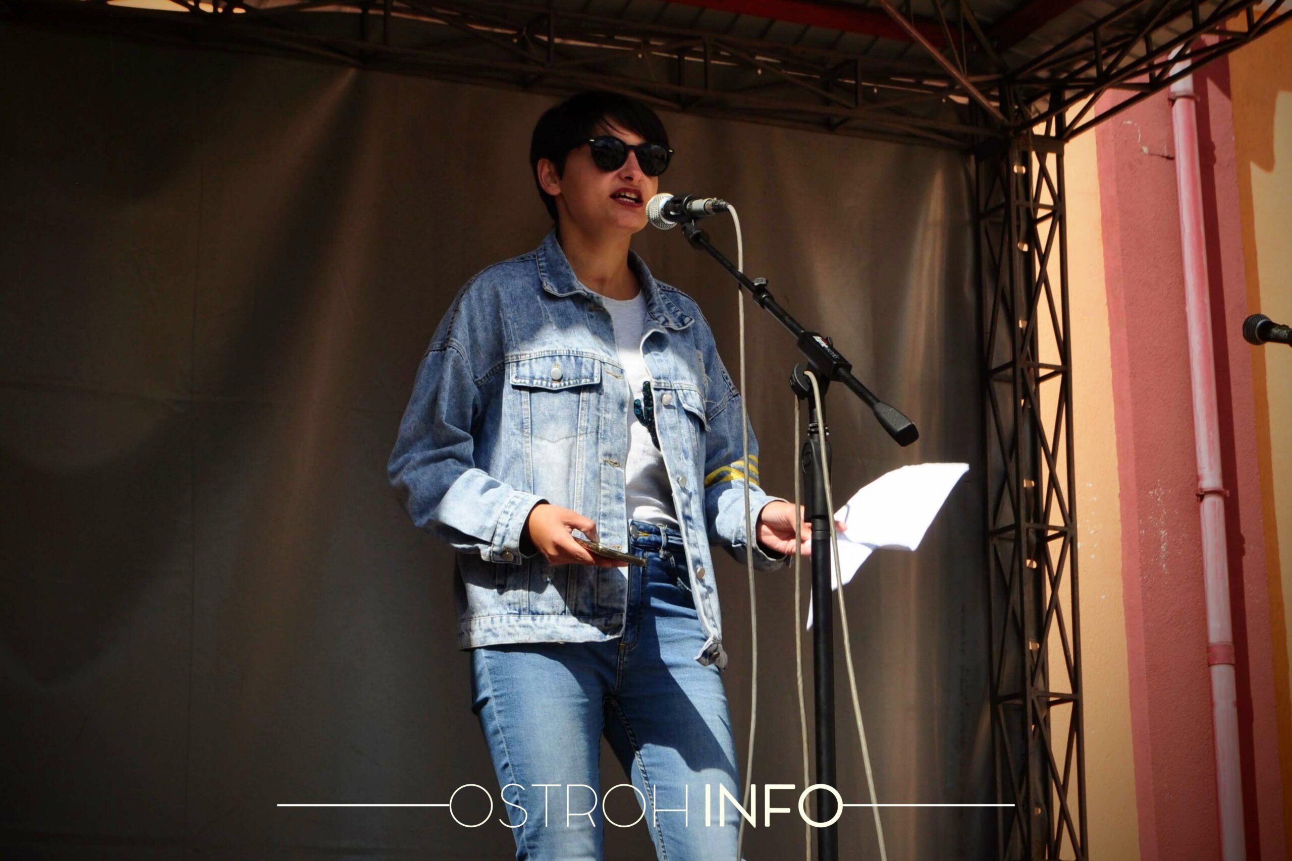 На сцену підіймається волонтерка Світлана Панченко. Вона займалася організацією маршу за права тварин в Острозі.