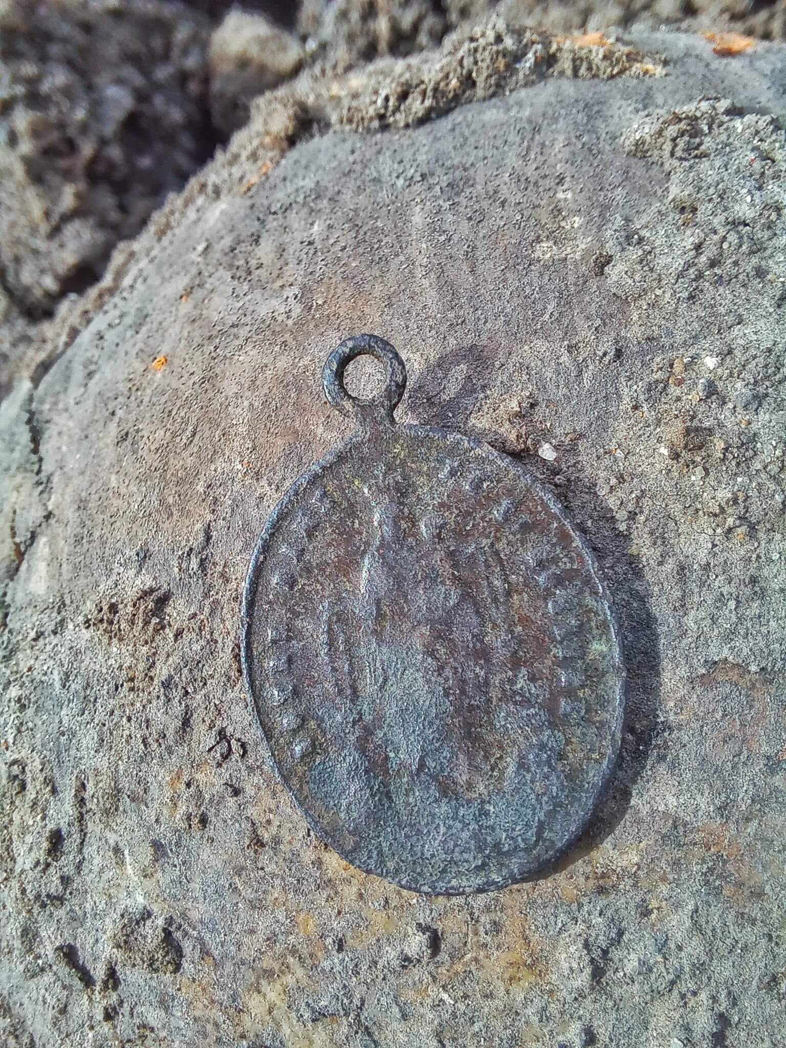 “Я з археологом пішов на місце вивозу землі та побачив там залишки острозької історії на купах сміття. Там і людські черепи, і кам’яний тесаний карниз усипальниці, уламки кераміки давньоруського часу і часу князів Острозьких; і ми навіть знайшли натільну іконку 18 ст. із зображенням Богородиці та святого Франциска”, – пише Микола Бендюк на своїй фейсбук-сторінці.
