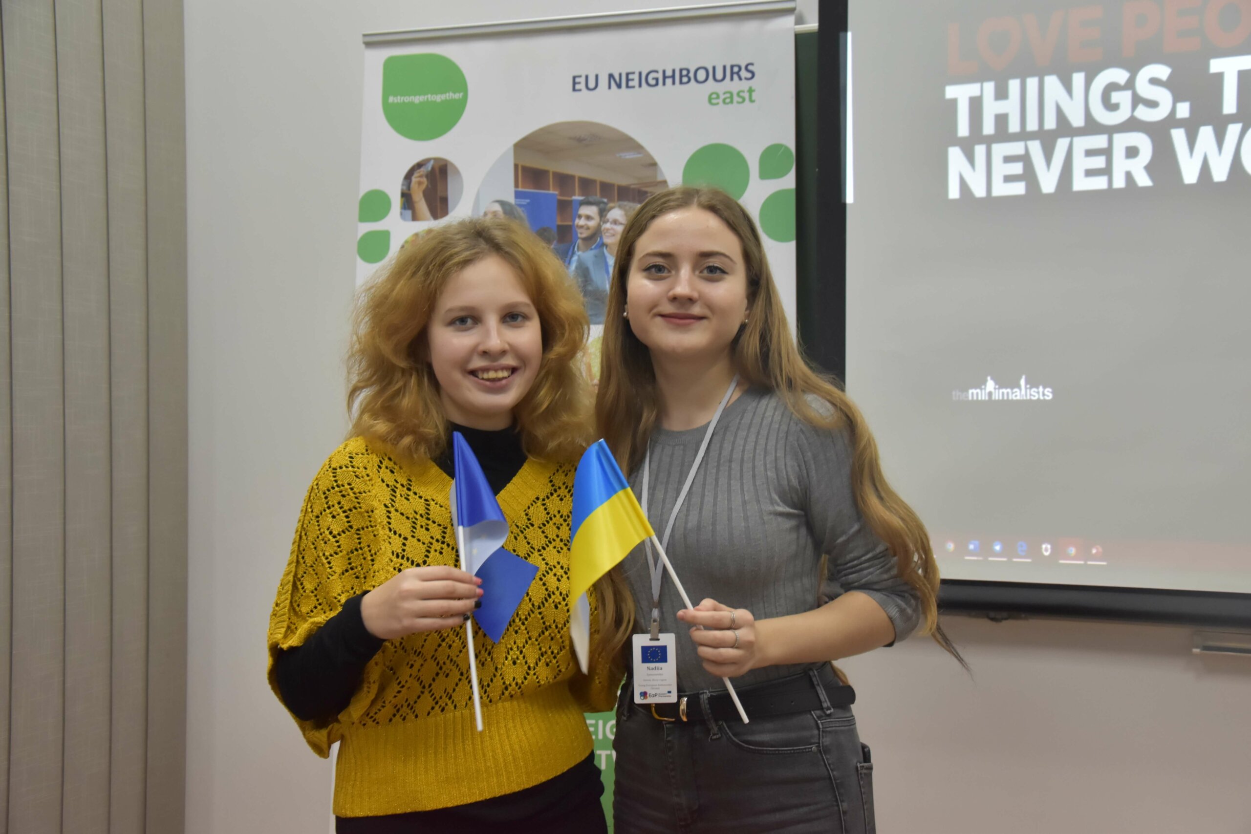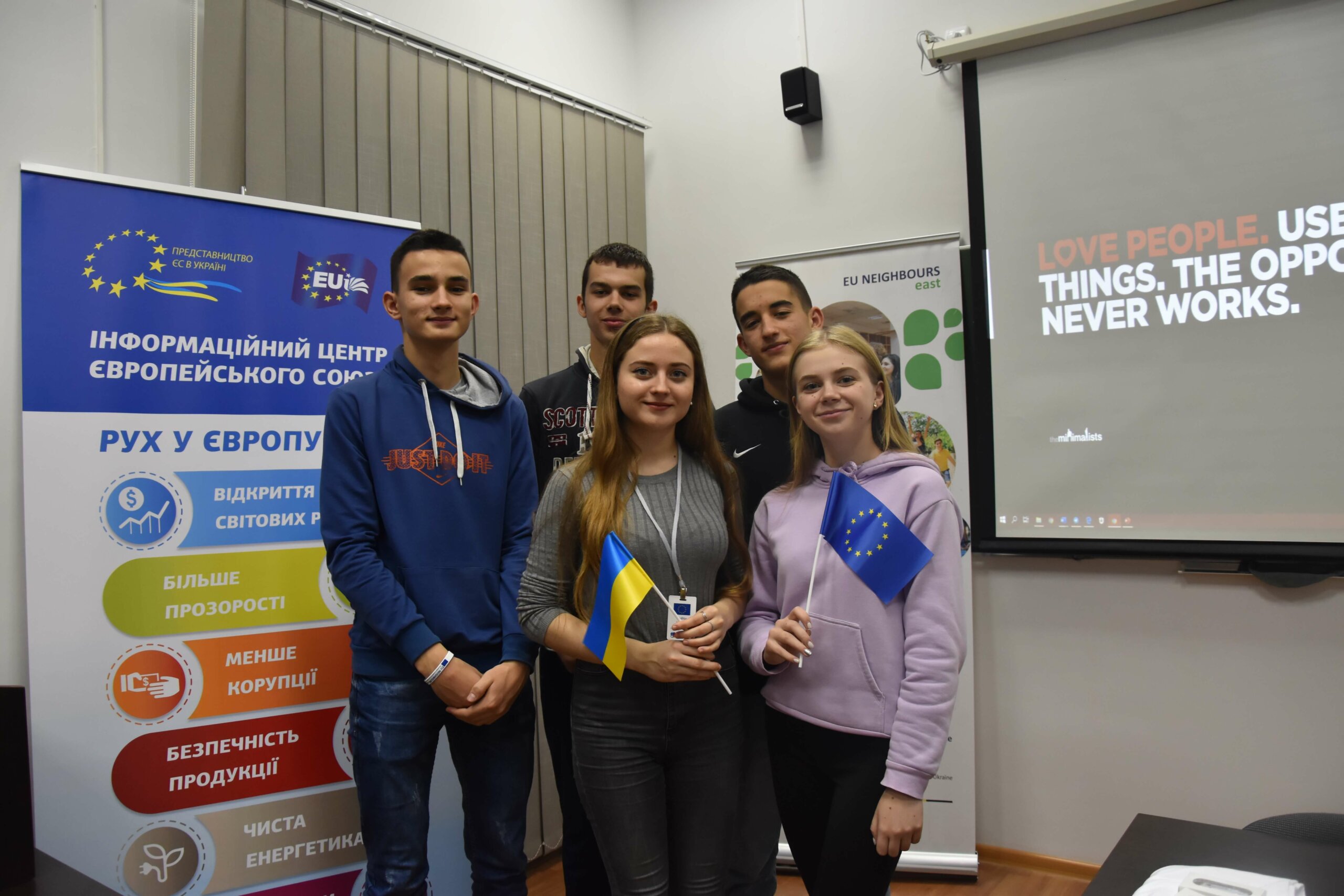 Спочатку організаторка показала презентації ініціативи Послів європейської молоді (Young European Ambassadors), яка є частиною Програми Східного партнерства ЄС. Це – об’єднання молодих людей, віком від 16 до 25 років із Азербайджану, Білорусі, Вірменії, Грузії, Молдови, України та країн Європейського Союзу. Це – волонтери, які цікавляться відносинами між Європейським Союзом та їхніми країнами.