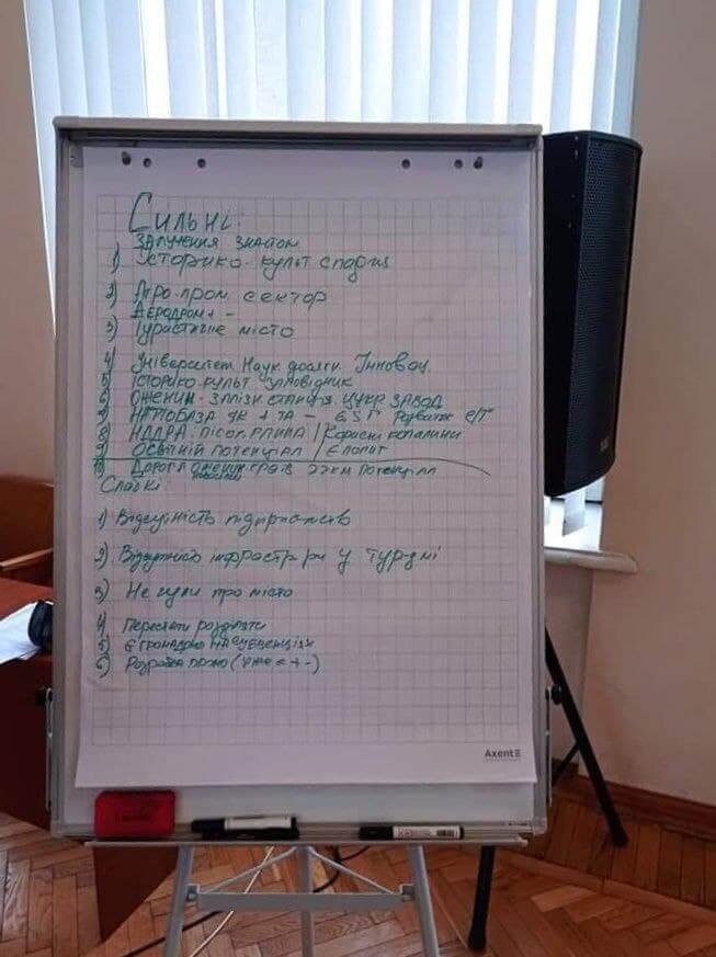 “В ході роботи обговорили соціально-економічний стан в громаді, основні проблеми та шляхи вирішення. Провели підготовчий етап SWOT аналізу (один із методів стратегічного планування – ред): визначили сильні та слабкі сторони, можливості та загрози в громаді”,— зазначила начальниця проєктно-інвестиційного відділу Острозької міської ради Ольга Стецюк.