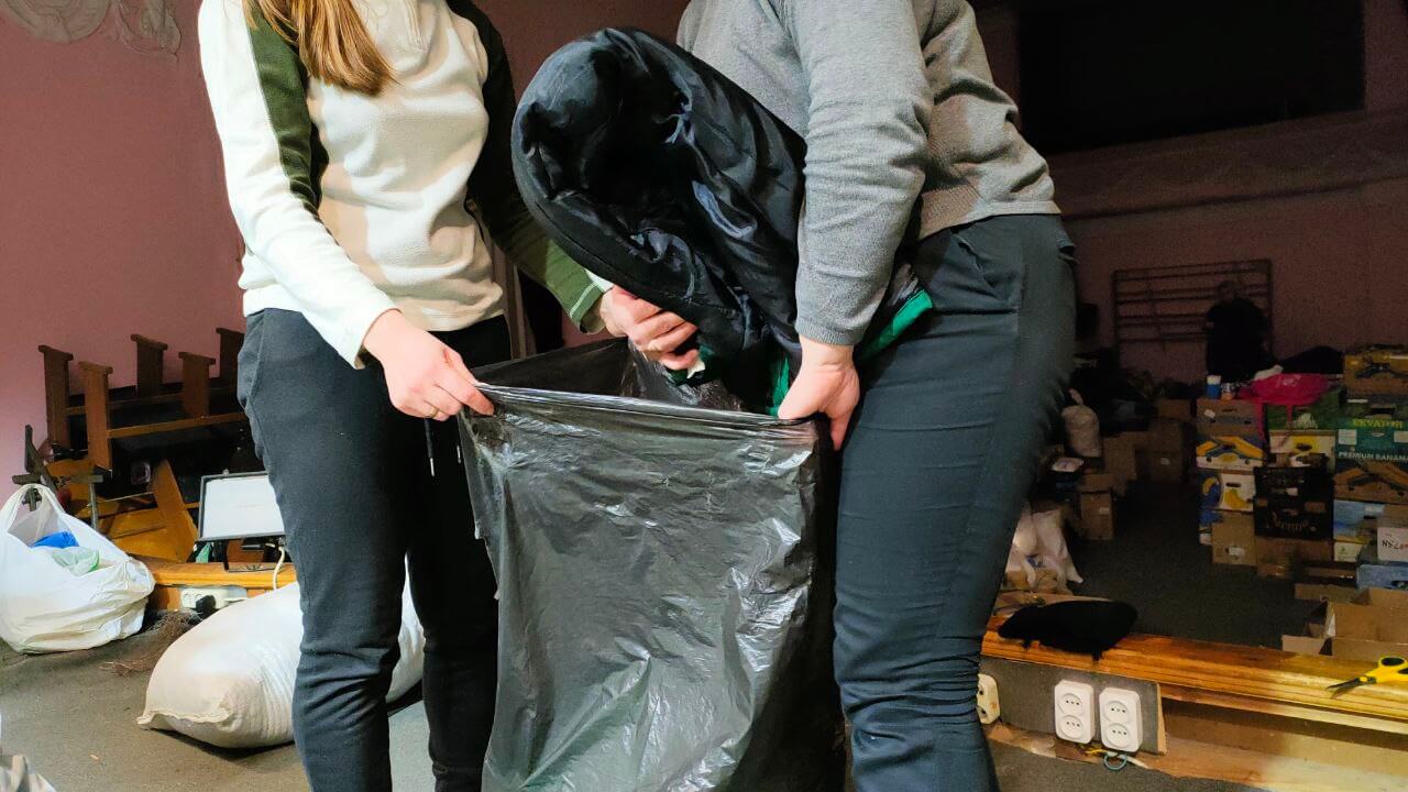 Речі з пакетів висипають на підлогу. Потім сортують — чоловіче до чоловічого, жіноче до жіночого, дитяче до дитячого. Окремо складають шапки та носки, постіль, подушки та ковдри.