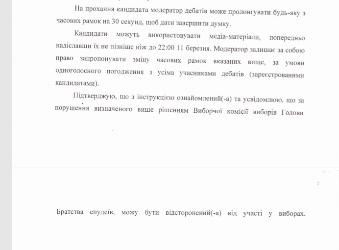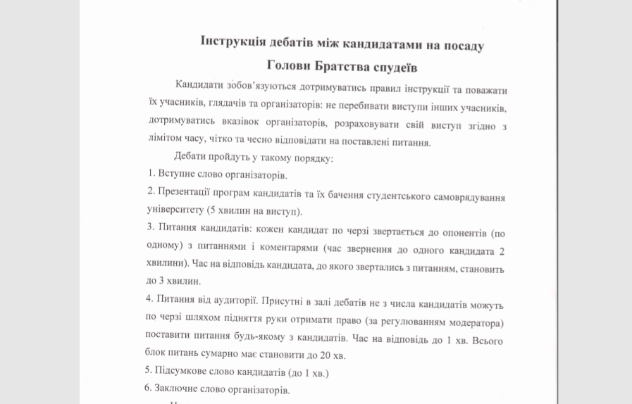 Голова Братства спудеїв ОА Богдан Михальчук прокоментував інцидент, що трапився під час дебатів між кандидатами на посаду ГБС 12 березня.