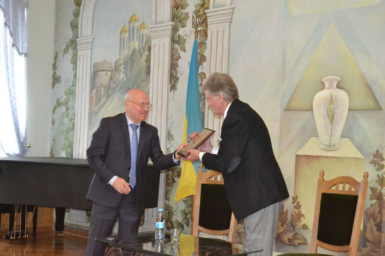 По закінченню зустрічі Вікторові Ющенку вручили подарунки від університету: подяку за участь у розбудові закладу та картину з його зображенням у вигляді козака-херувима.