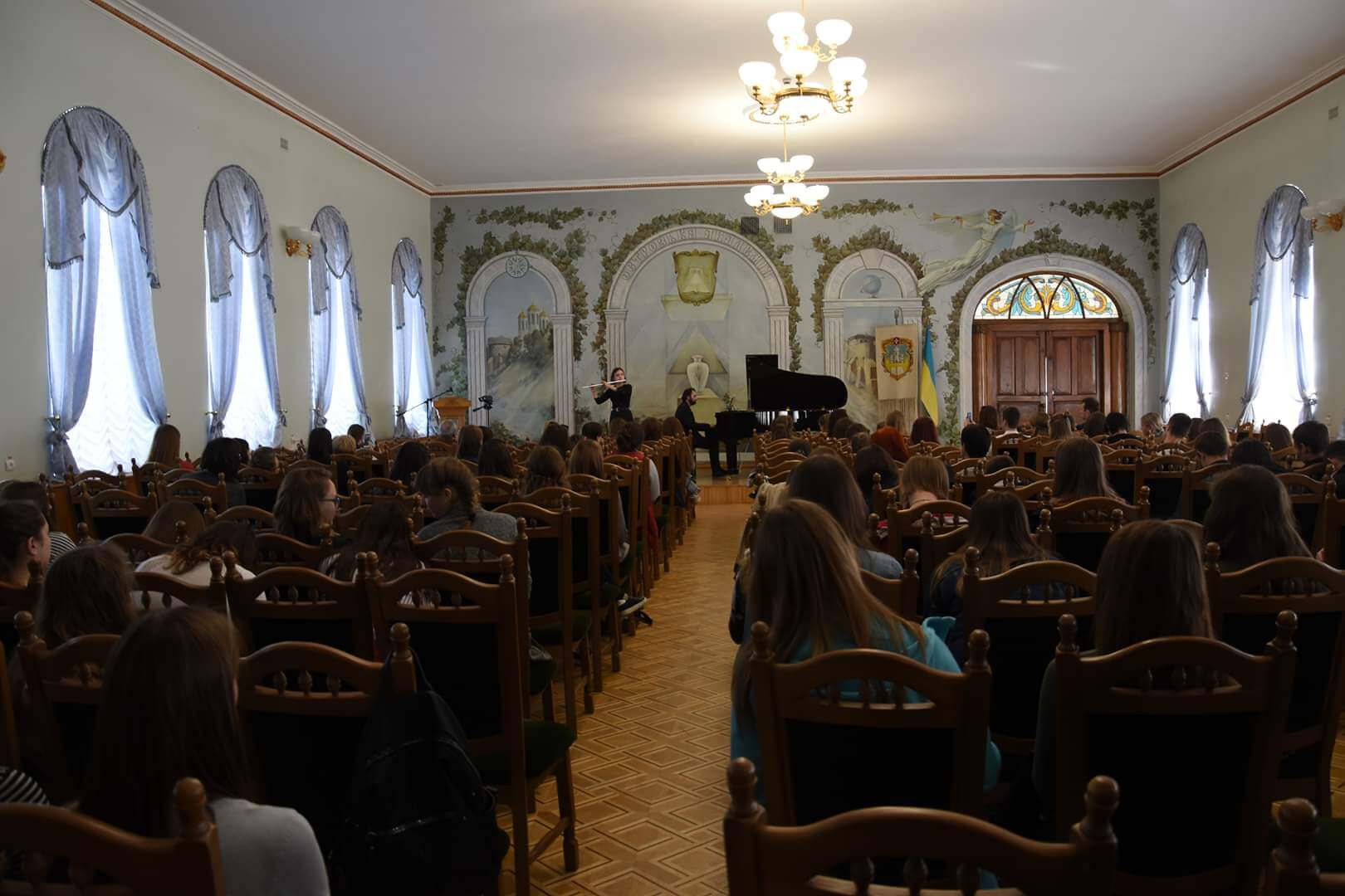 Концерт львівського піаніста Данила Саєнка та флейтистки Андріани Саєнко відбувся в Острозькій академії 13 травня.