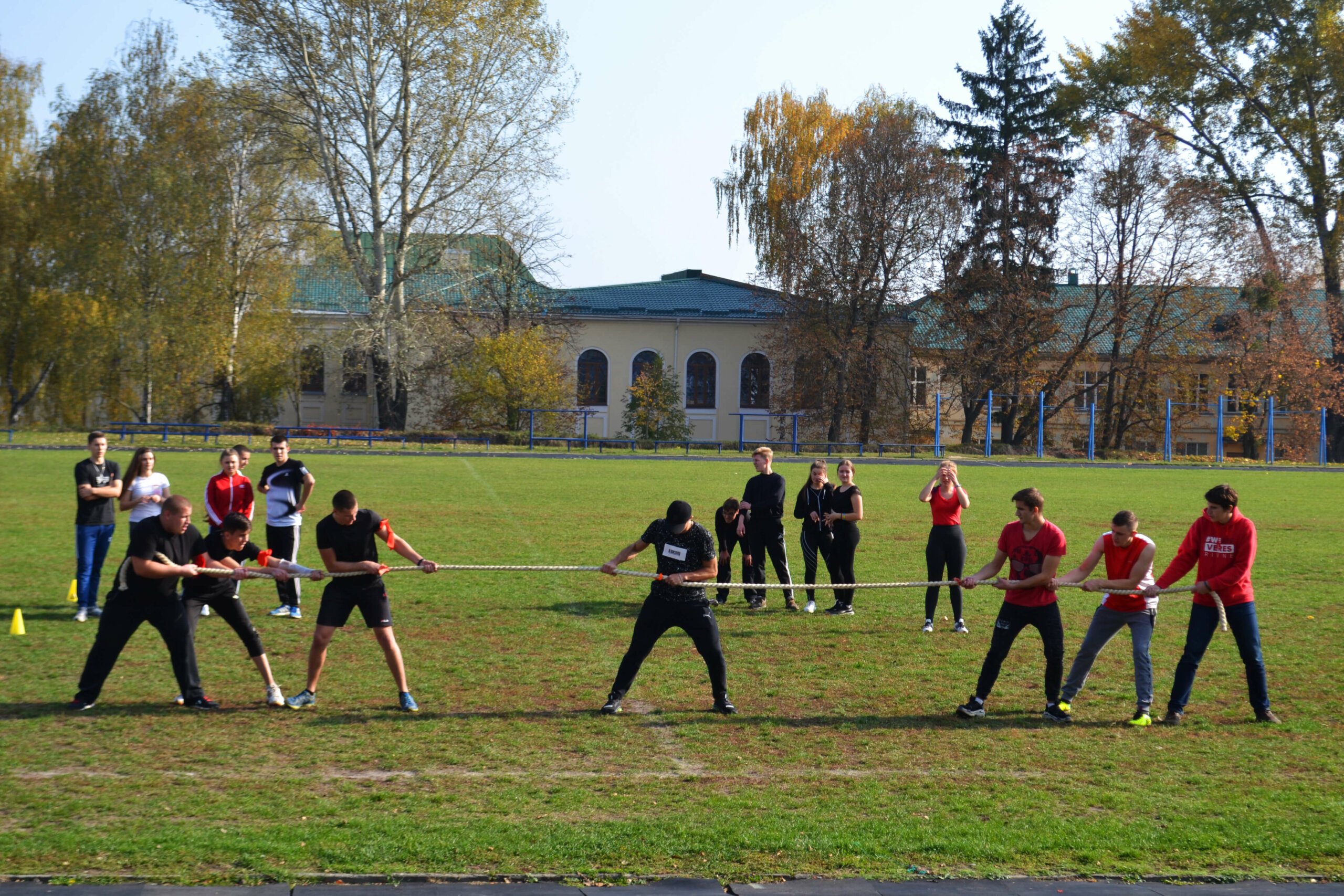 Після концерту на стадіоні розпочалися “Козацькі забави”. Це – змагання серед факультетів у форматі естафет. Щойно ведучі оголосили про початок змагань, на полі почалася запекла боротьба між командами. Усього їх було чотири: «Славне товариство», «Патріоти», «Відважні» та «Острозькі кожум’яки». Щоб визначити переможця, організатори дали командам низку завдань: представлення, «Живий ланцюг», «Відун», естафета, перетягування канату та забави «кашоїдів». Вболівальники не затихали ні на мить, підтримуючи команди.
