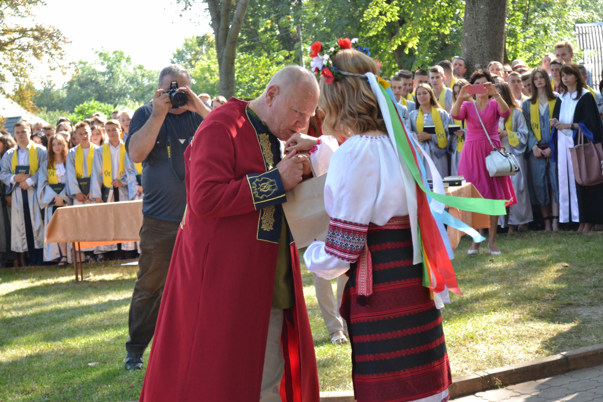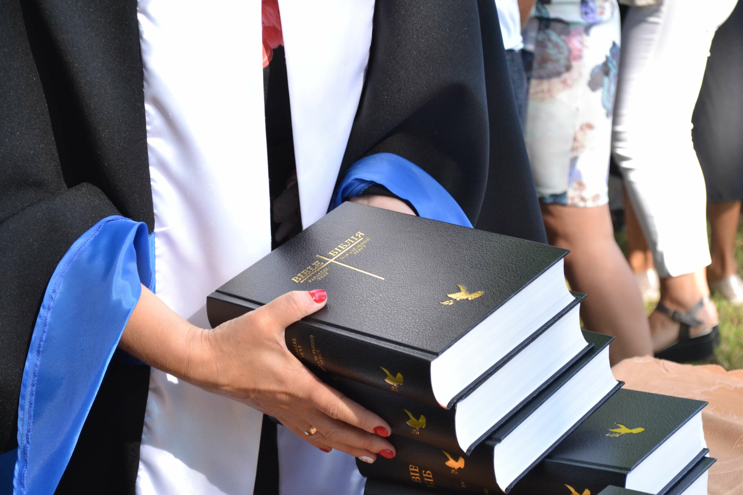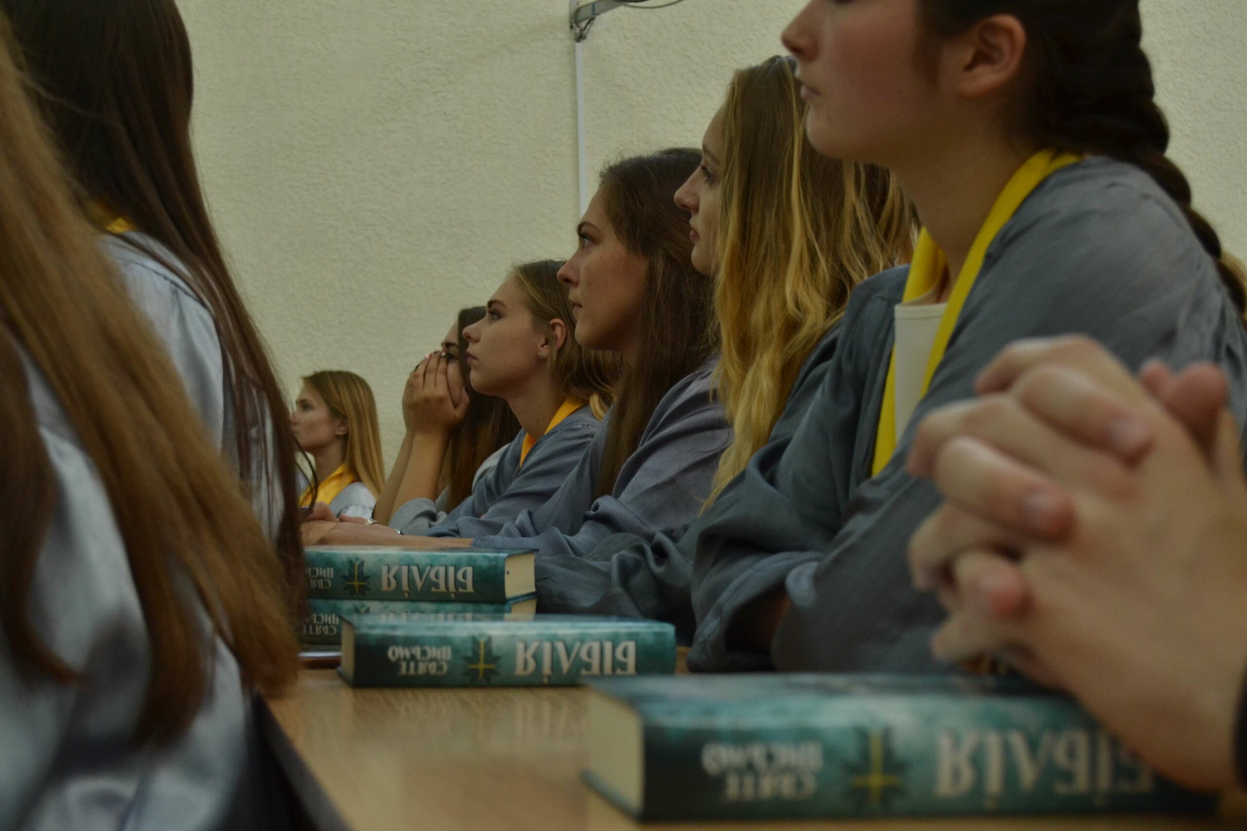 За традицією, першокурсникам дарують Біблії, адже «Острозька академія є закладом не лише вищої освіти, а й духовно-морального виховання», – каже настоятель студентсько-викладацького храму Василь Жуковський під час свого виступу.