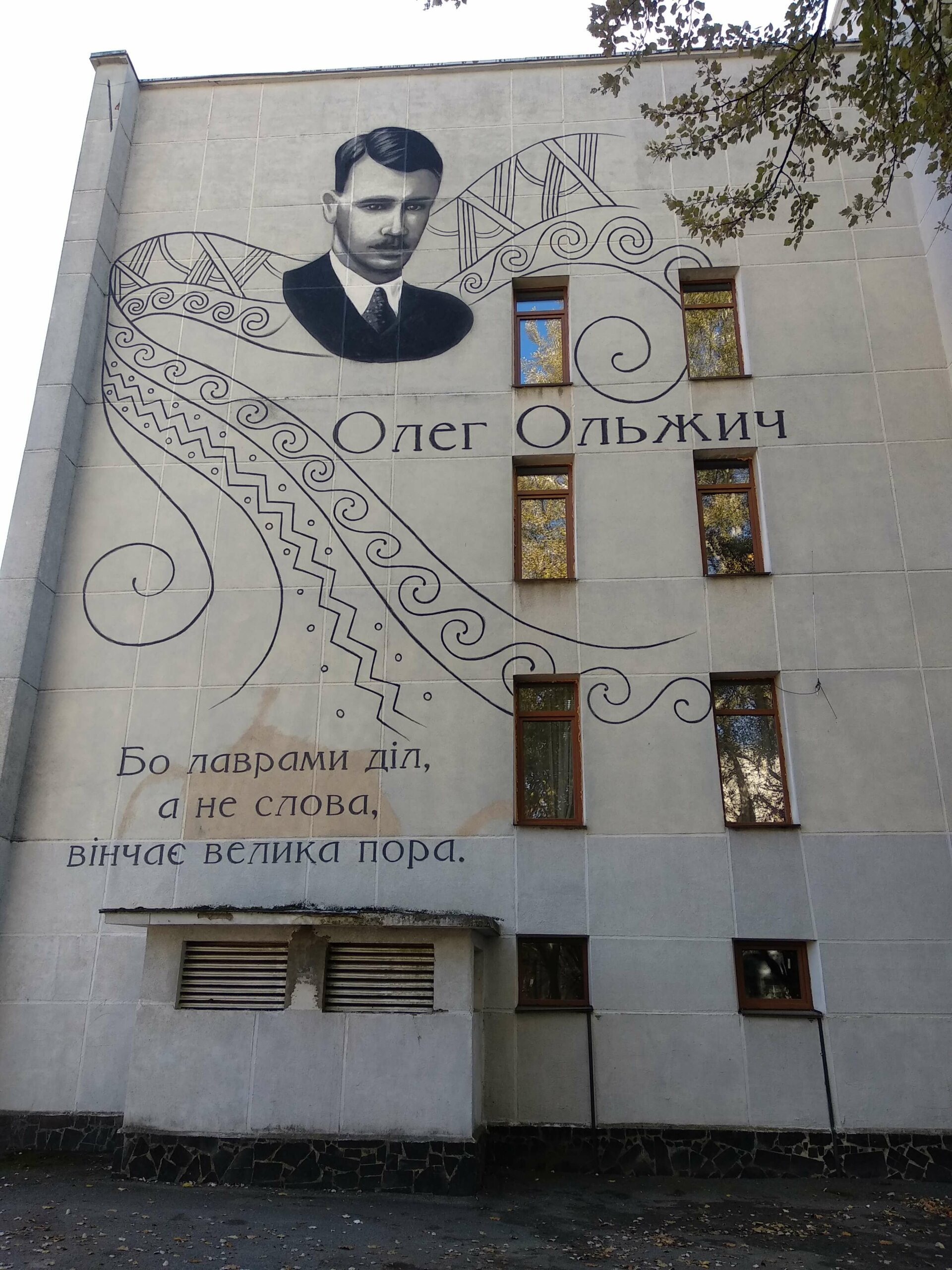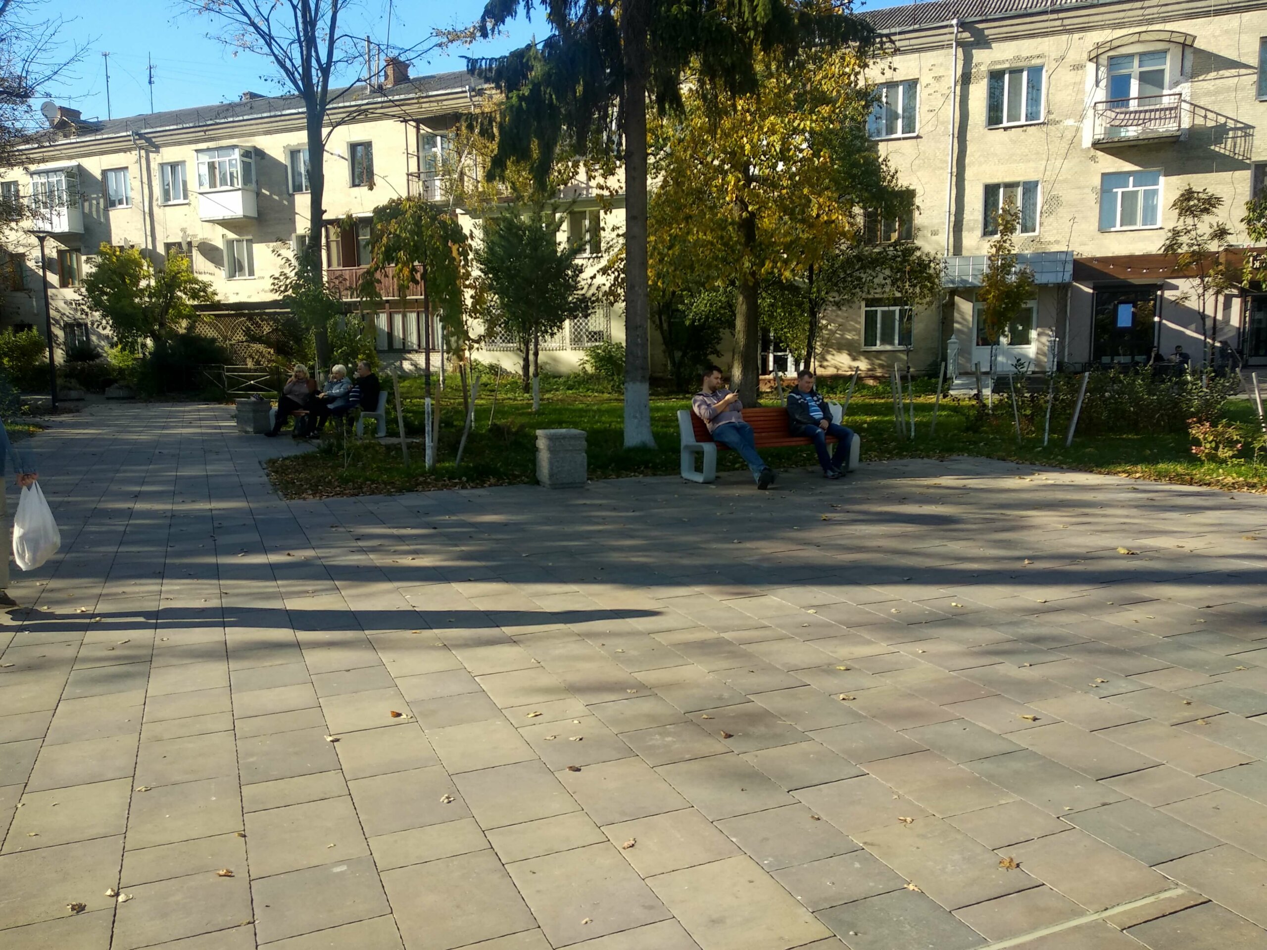 Пізніше ми зустрілися з подругою, яка сама з Житомира й прогулялися уже вечірнім містом. Ліхтарів на тротуарах доволі мало, проте ось будівля Житомирської ОДА майорить синьо-жовтою підсвіткою, і ледве не кожен знак пішохідного переходу світиться, мов новорічна ялинка. Коли ми запитали подругу про безпеку ввечері, вона відповіла, що, на жаль, забула свій газовий балончик.