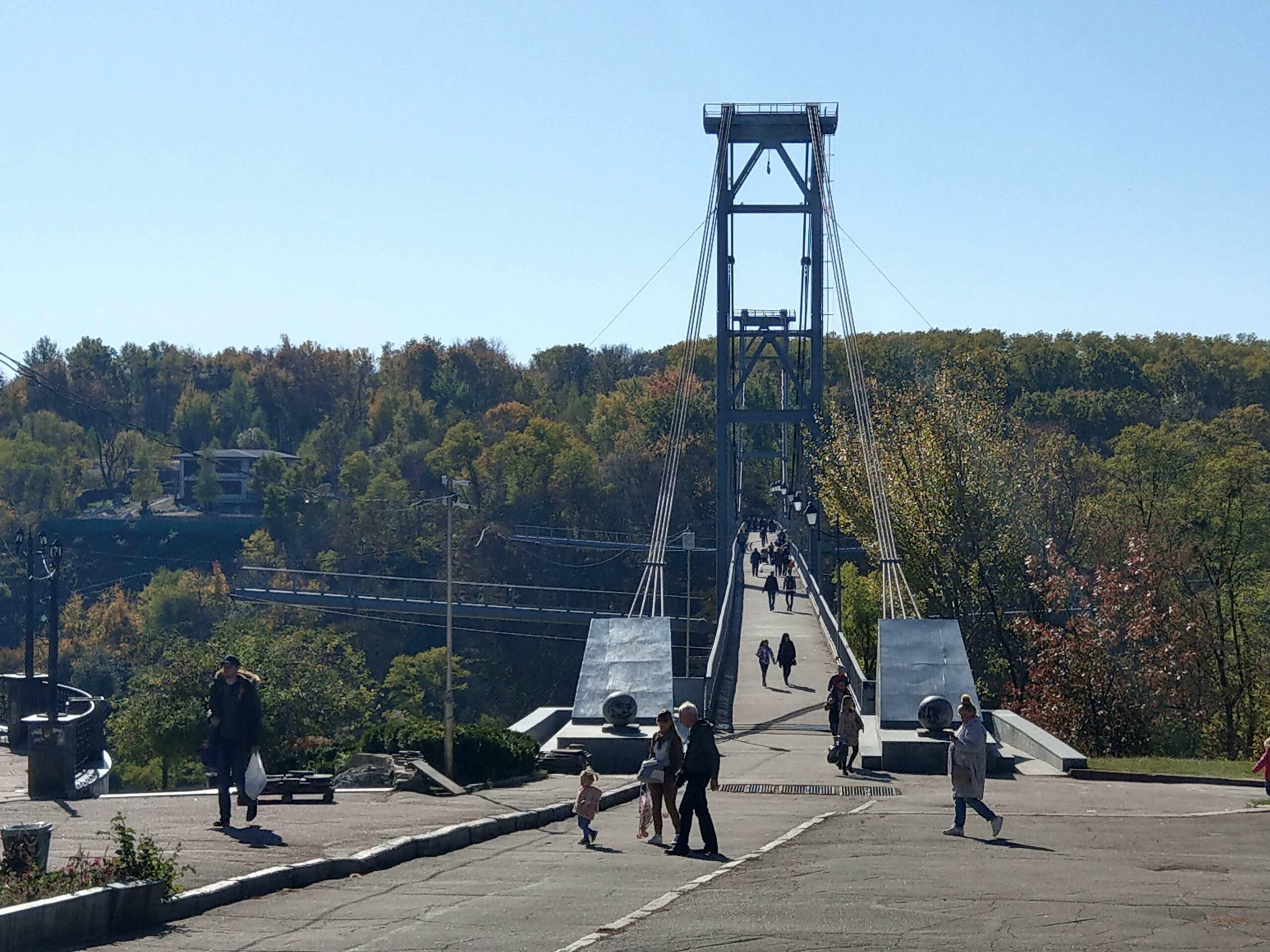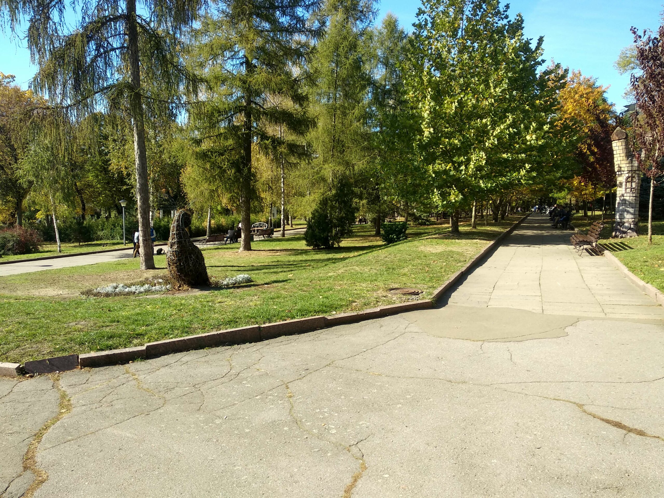 З усіх зелених зон парк імені Гагаріна є чи не найбільшим у Житомирі. Він лежить на березі річки Тетерів, через яку простягається пішохідний міст. Набережну в межах цього парку зараз реставрують. Із медіа я дізнався, що з процесом забудовник затягує, і перший етап робіт мав розпочатися ще до вересня. Обов’язково повернуся через рік, щоб побачити результат.