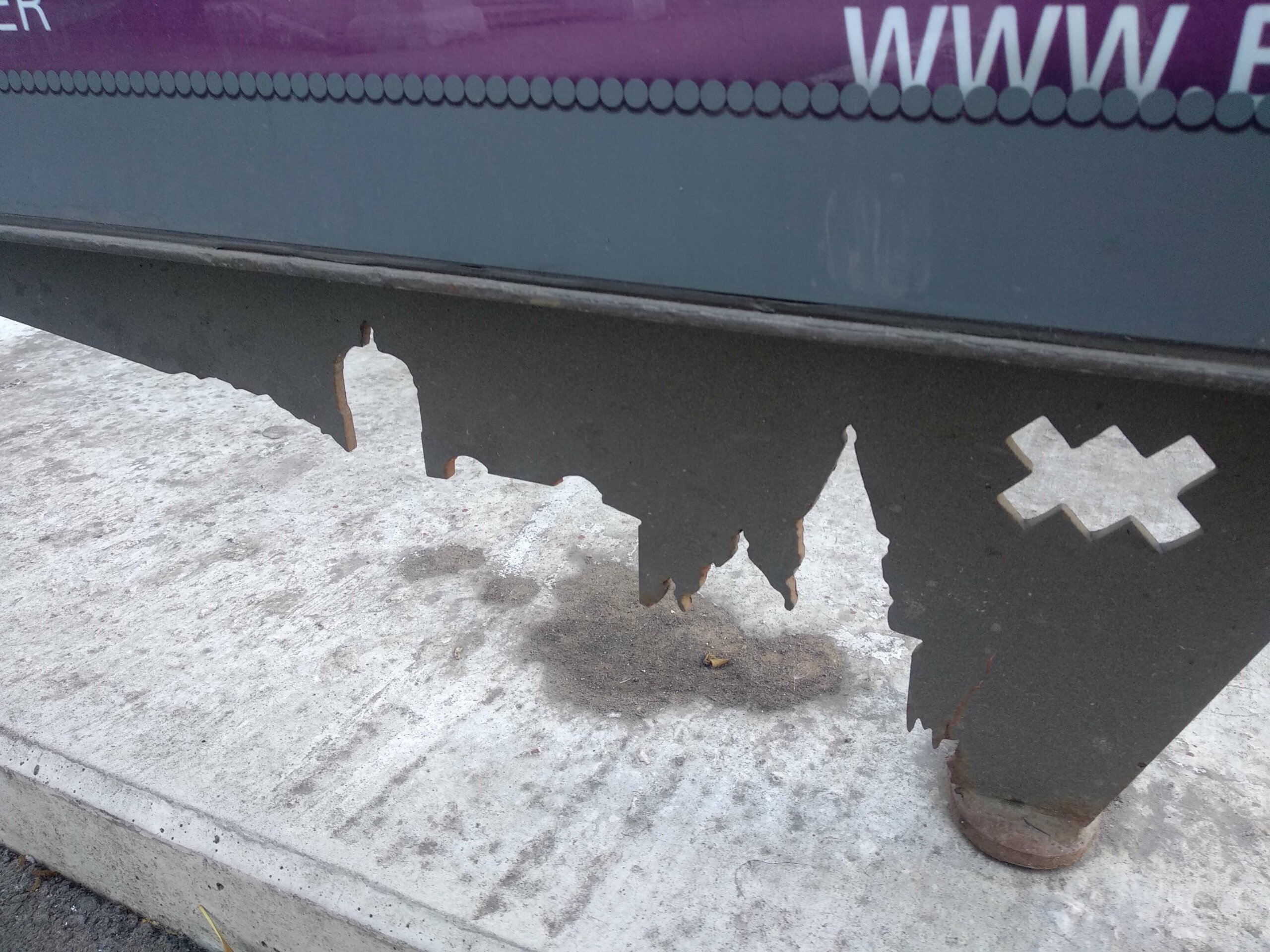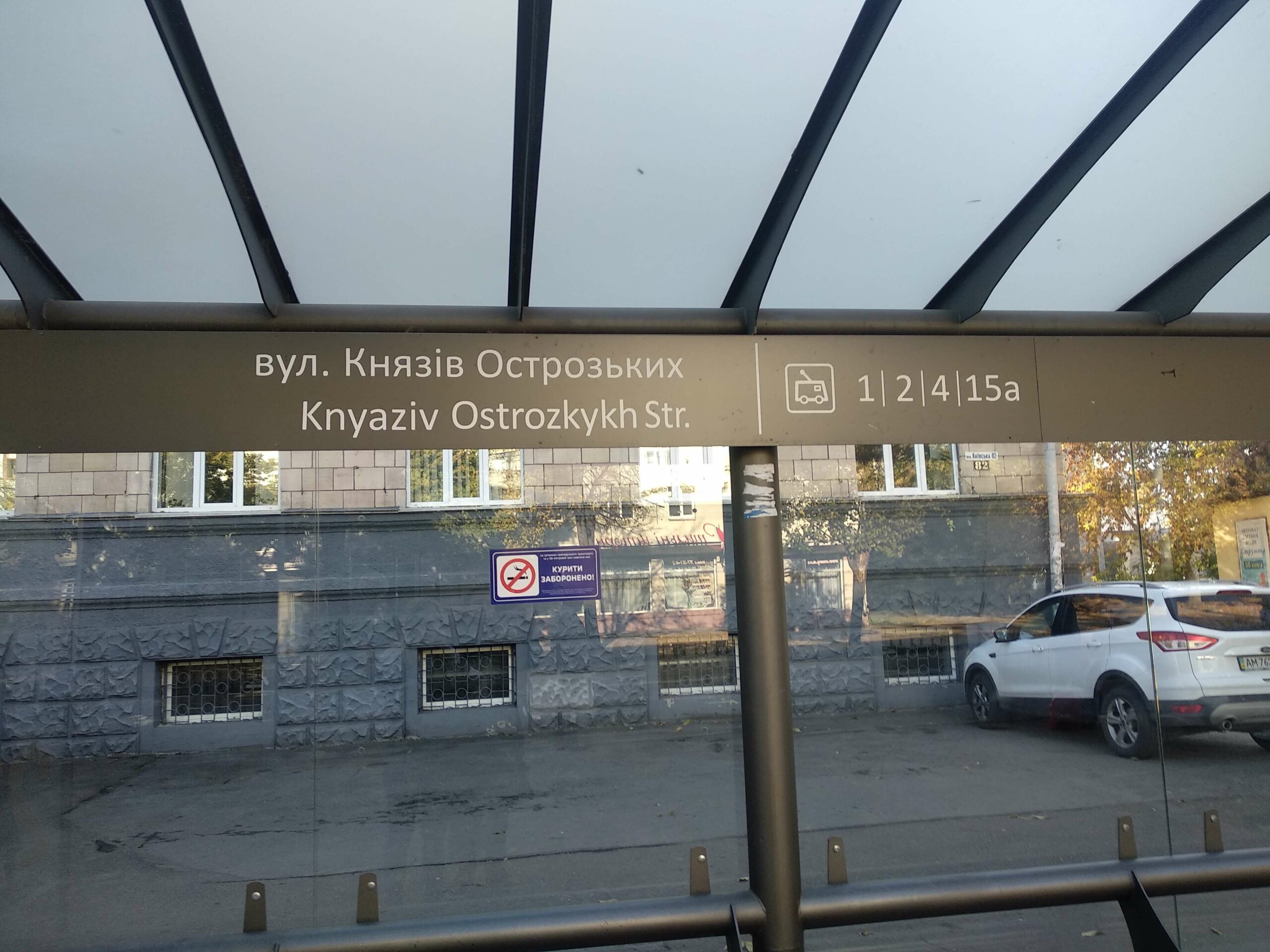Ми ось знайшли вулицю князів Острозьких. Але не тільки цей патріотичний факт нас потішив, але й маленька деталь на стінці зупинки: унизу, просто біля землі видно силует міста. Дрібниця, так, але саме такі речі розкривають місто та його душу.