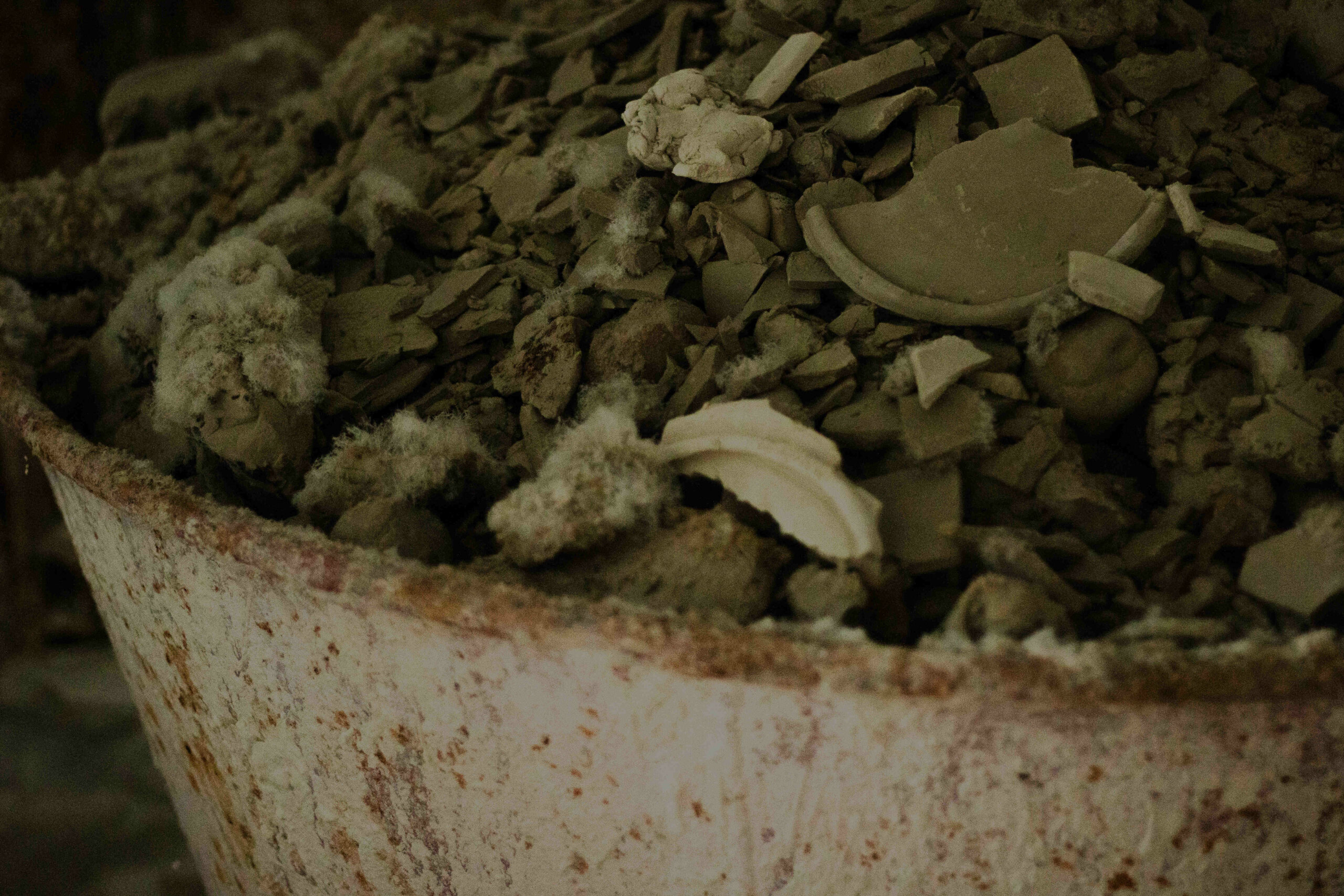 Історія керамічної майстерні острозької родини розпочинається за яскраво-бордовими дверцятами з низьким порогом. Приміщення заставлене драбинами, дошками та будівельними матеріалами. Біля входу видніється холодильник, а за ним — мішки з глиною для виробництва. Через рік у глиноробні планують закінчити ремонт, після якого там будуть різноманітні локації. Про це розповідає теперішній власник та спадкоємець “Острозької кераміки” Владислав Зарічний і веде дорогою до наступних кімнат майстерні.