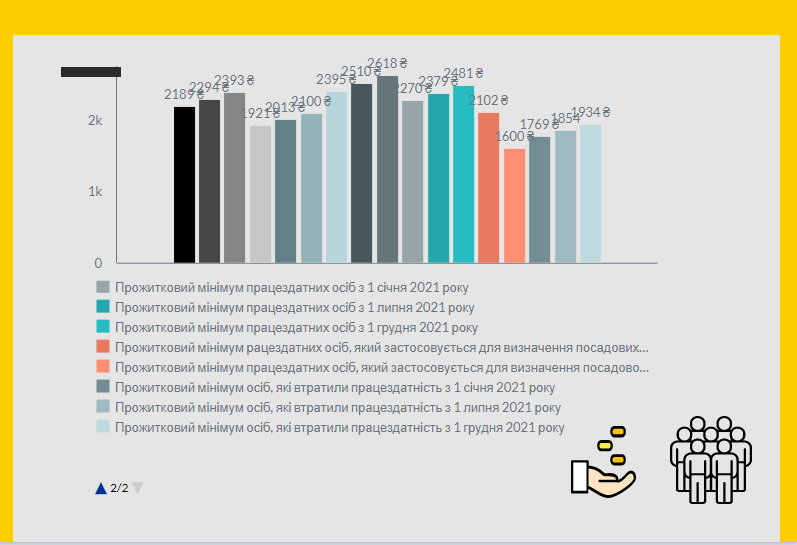 Прожитковий мінімум однієї особи на місяць з 1 січня становить 2 189 гривень, з 1 липня становитиме 2 294 гривні, з 1 грудня — 2 393 гривні.